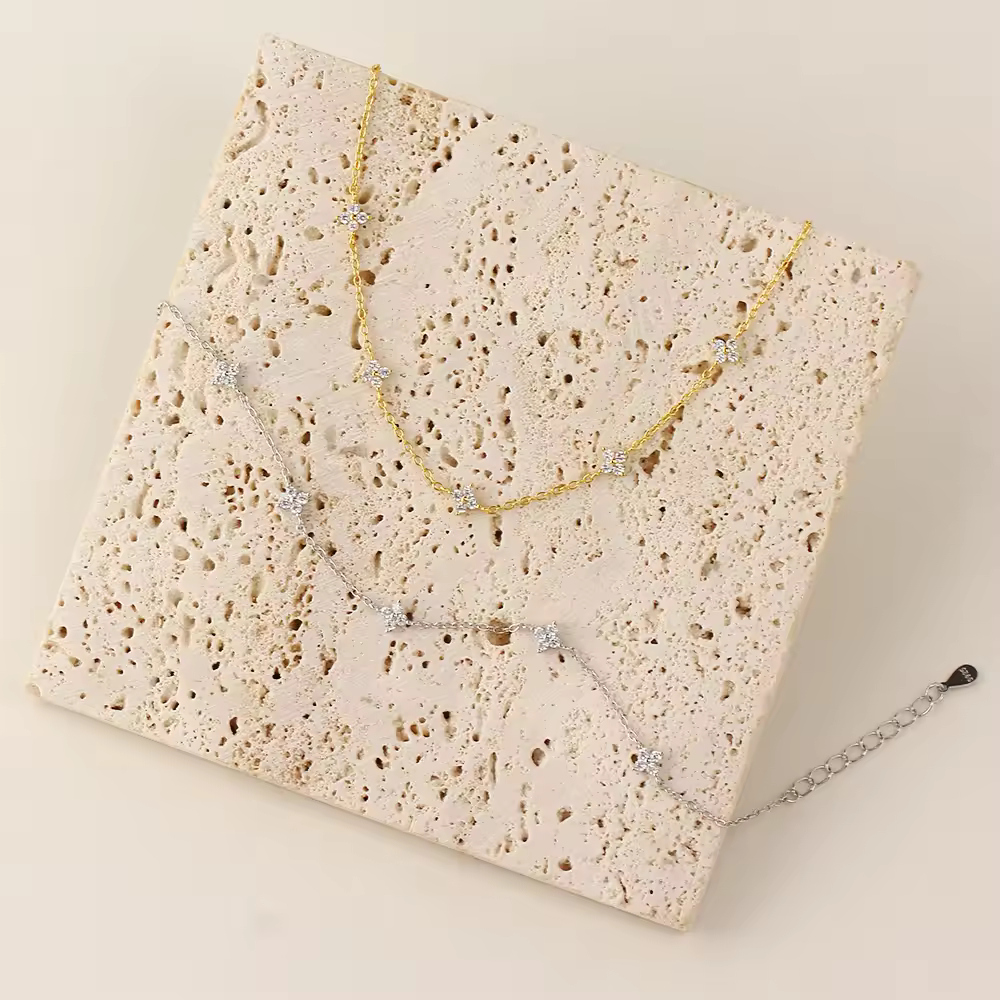 925 Sterling Silver Dainty Zircon Stone Flower Bracelet Rhodium Plated Party Jewellery for Girls